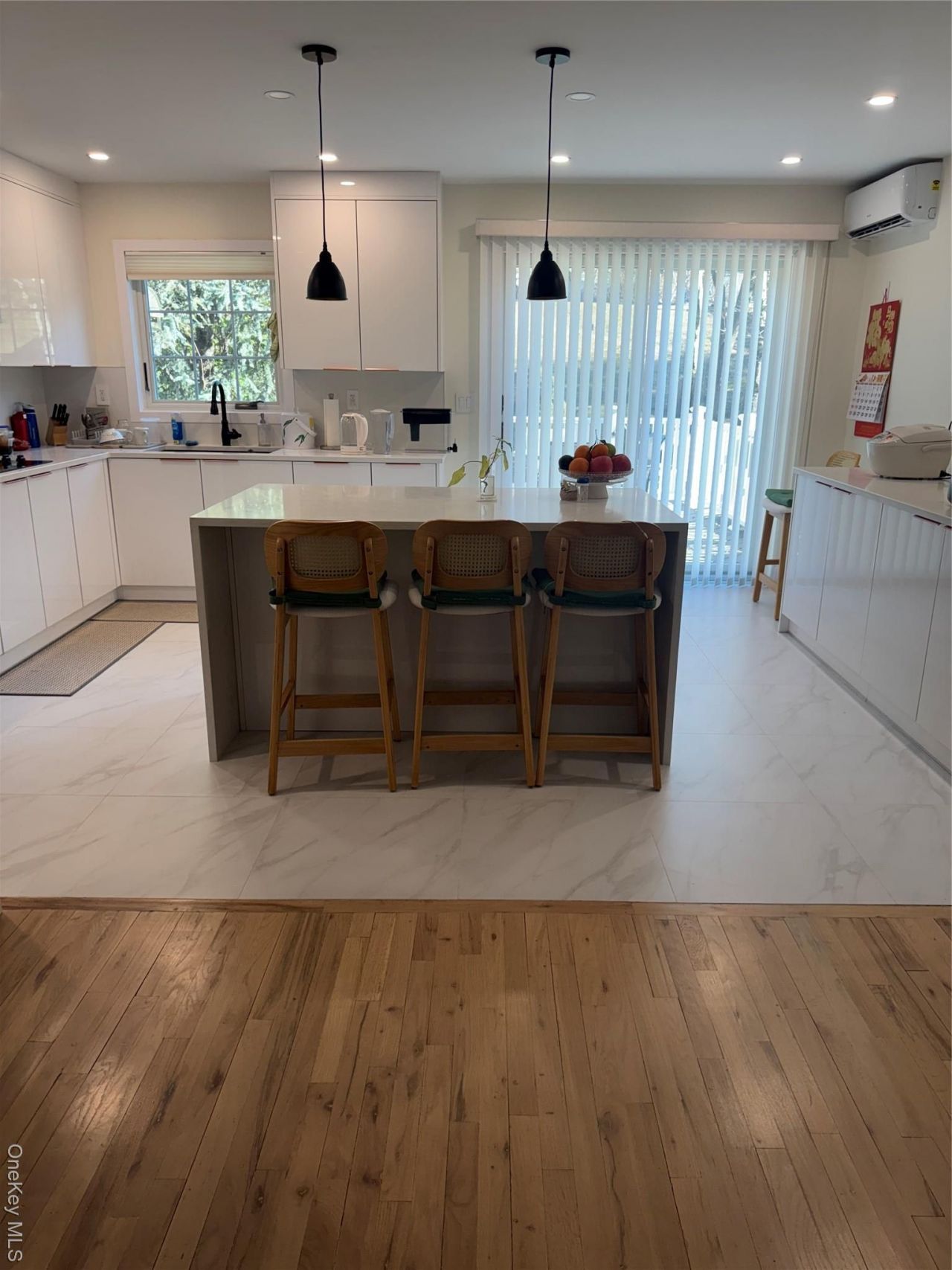Walk into this recently renovated beautiful home. All new in eat kitchen with high hats, combo stove, new refrigerator, quartz countertops. Beautiful new hardwood and tile floors throughout first floor. Sliding glass door off kitchen to deck. Fenced yard. Dining area and living room. Freshly painted.